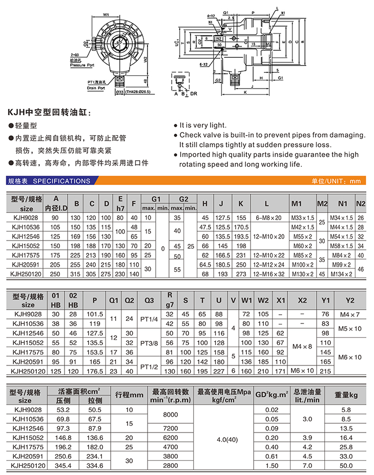 KJH 中空型回轉(zhuǎn)油缸